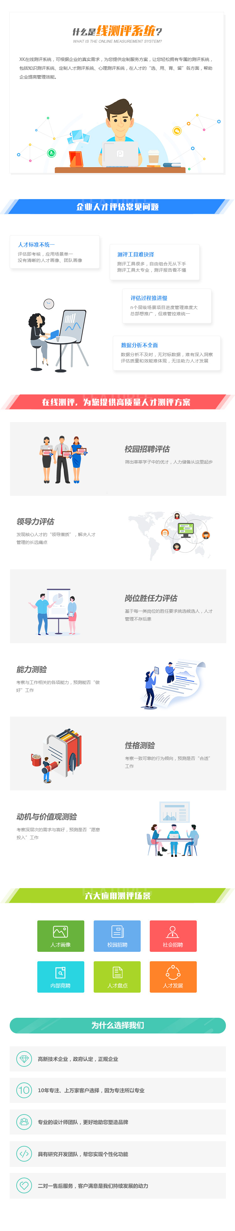 XK在线测评系统,可根据企业的真实需求,为您提供定制服务方案,让您轻松拥有专属的测评系统,包括知识测评系统、定制人才测评系统、心理测评系统,在人才的“选、用、育、留”各方面,帮助企业提高管理效能。